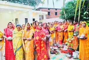 कार्तिक पूर्णिमा पर माह भर चले कार्तिक माह अनुष्ठान का कार्तिक व्रतधारी महिलाओं के द्वारा समापन किया!