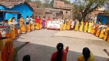इस अवसर पर बाल विवाह जैसी सामाजिक बुराई के खिलाफ जनजागरूकता फैलाने के उद्देश्य से एक ग्राम भ्रमण रैली भी निकाली गई! जिसमें किशोर-किशोरियों ने हाथों में संदेशात्मक पोस्टर लेकर बाल विवाह के दुष्परिणामों के प्रति ग्रामवासियों को जागरूक किया। रैली उपरांत मानव श्रंखला बनाकर सभी प्रतिभागियों को बाल विवाह न करने और न होने देने की सामूहिक शपथ दिलाई गई!इस दौरान आँगनबाड़ी कार्यकर्ता व सहायिकाओं की उपस्थिति रही!