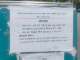 नोटिश बोर्ड सहित गेट में लगा है आदेश
