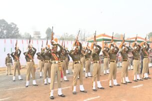गणतंत्र दिवस के जिले के मुख्य समारोह में राष्ट्र ध्वज तिरंगा फहराने के बाद लोक स्वास्थ्य यांत्रिकी मंत्री सपंतिया उइके ने खुली सफेद जिप्सी में कलेक्टर राघवेन्द्र सिंह एवं पुलिस अधीक्षक संपत उपाध्याय के साथ परेड का निरीक्षण किया। उन्होंने मुख्यमंत्री डॉ. मोहन यादव का प्रदेश की जनता के नाम गणतंत्र दिवस के संदेश का वाचन किया। इस मौके पर सशस्त्र बलों ने हर्षफायर किये तथा छठवीं बटालियन के बैंड दल द्वारा राष्ट्रगान की धुन बजाई गई। लोक स्वास्थ्य यांत्रिकी मंत्री श्रीमती उइके ने तिरंगे के तीन रंगों के गुब्बारे मुक्त आकाश में छोड़े। समारोह में परेड द्वारा शानदार मार्चपास्ट प्रस्तुत किया गया।मार्चपास्ट में आईटीबीपी, एसटीएफ छठवीं वाहिनी, क्यूआरएफ छठवीं वाहिनी, होमगार्ड, जिला पुलिस बल पुरूष, नेशनल कैडेट कोर की नेवल यूनिट, नेशनल कैडेट कोर की सीनियर तथा जूनियर डिवीजन की बालक एवं बालिका, स्काउट एवं गाईड तथा शौर्य दल की प्लाटून शामिल थीं। परेड का नेतृत्व भारतीय पुलिस सेवा के प्रशिक्षु अधिकारी शुभम सिंह ठाकुर ने किया। परेड के उप कमांडर सूबेदार अमित शिववंशी थे। मुख्य अतिथि लोक स्वास्थ्य यांत्रिकी मंत्री श्रीमती उइके ने परेड की सलामी ली तथा मार्चपास्ट के बाद प्लाटून कमाण्डरों से परिचय प्राप्त किया। उन्होंने स्वतंत्रता संग्राम सेनानियों के परिजनों एवं लोकतंत्र सेनानियों का शॉल एवं श्रीफल भेंट कर सम्मान भी किया।
