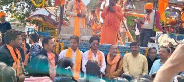 महात्रिशूल ओर भगवान के लगते जयकारों के बीच मार्गो पर श्रद्धालु टकटकी लगाए हुए थे!आगे -आगे यात्रा चल रही थी ओर श्रद्धालु भगवान के जयकारे लगा रहे थे!भारत के सबसे बड़े त्रिशूल को श्रद्धालु एकटक निहार रहे थे!यात्रा मै पुलिस व्यवस्था भी रही!इस दौरान बजरंग दल सुरक्षा प्रमुख सानू ठाकुर, जिला मंत्री राहुल मिश्रा,बाबा पांडेय, जिला सह मंत्री लकी अग्रहरि, शालू दुबे, कमलेश रजक,अंकुश साहू, जय दुबे, अमित जोगी,पंकज साहू, अमन असाटी सहित बड़ी संख्या मै श्रद्धालुओं की उपस्थिति रही!